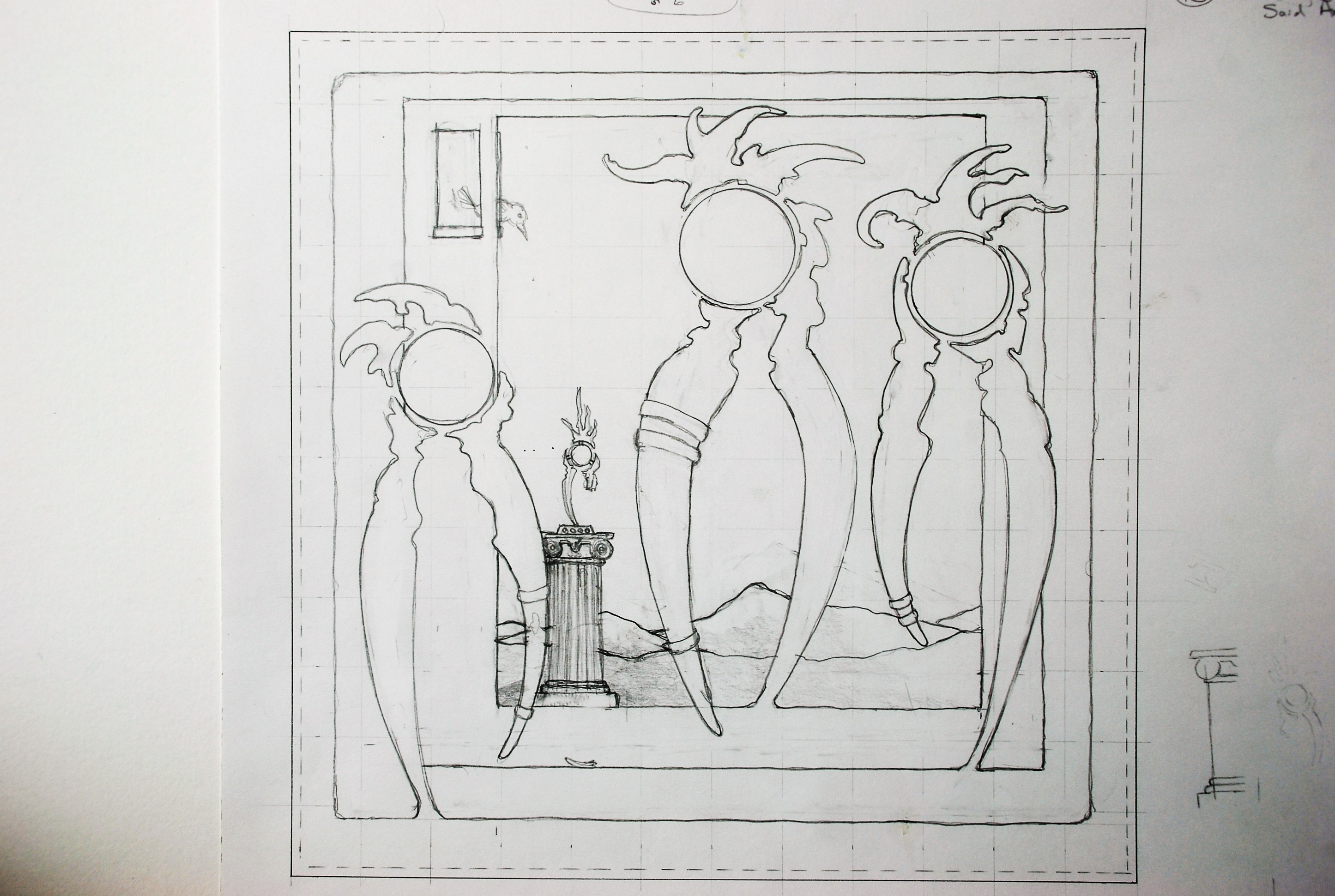The second Monday-the 12”x12” pencil worksheet showing the intended painting.