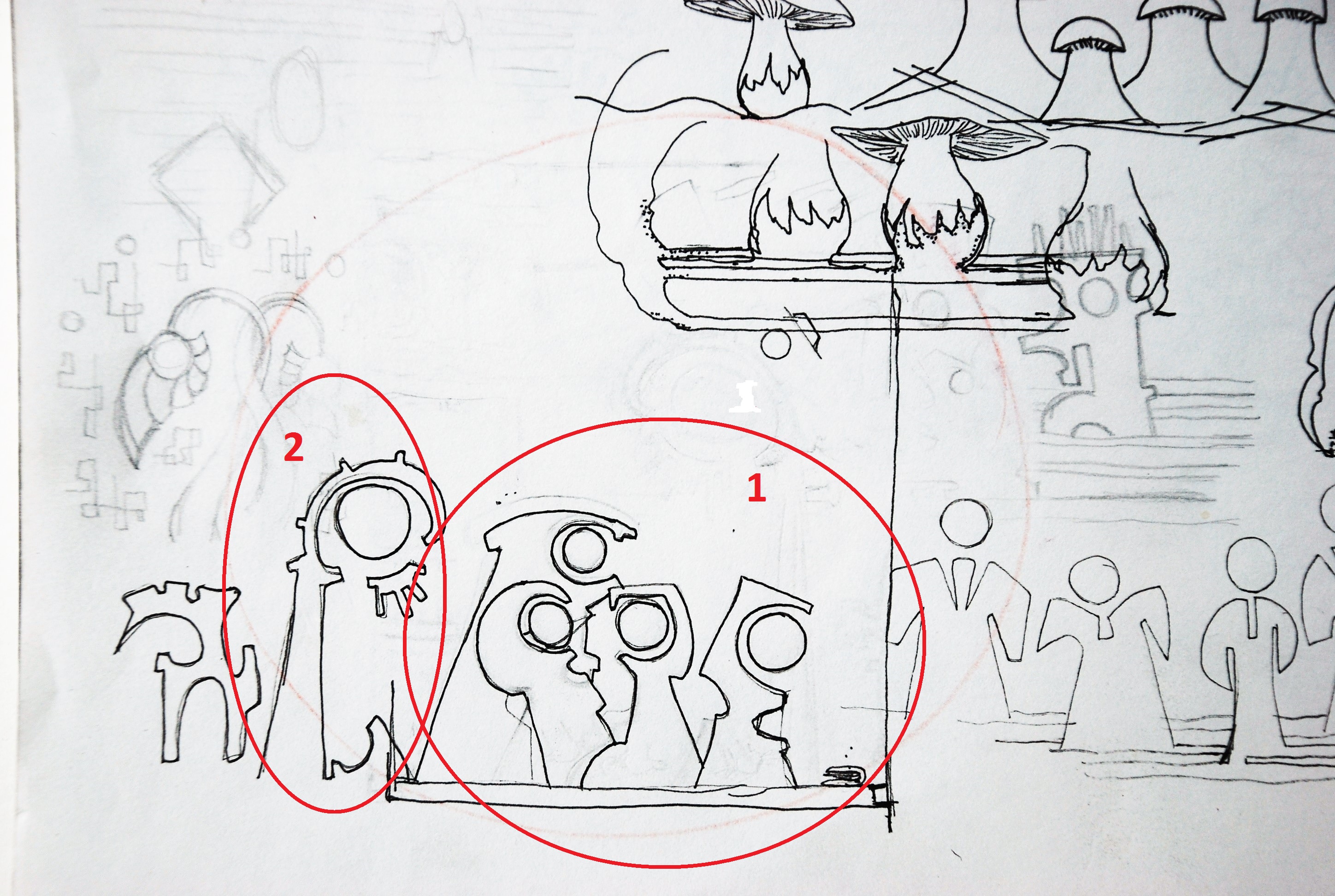 The project will be posted in the following sequence, 1st Monday-the sketch/doodle or related source from whence the painting has originated.