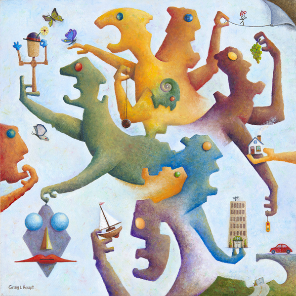 On the worksheet the hand/arm coming in from the right had an apple in it. This was a weak correlation to the person holding the grapes. I changed the apple to a house. The person holding the building, looking at the hand/arm with a house, I felt had a stronger correlation.