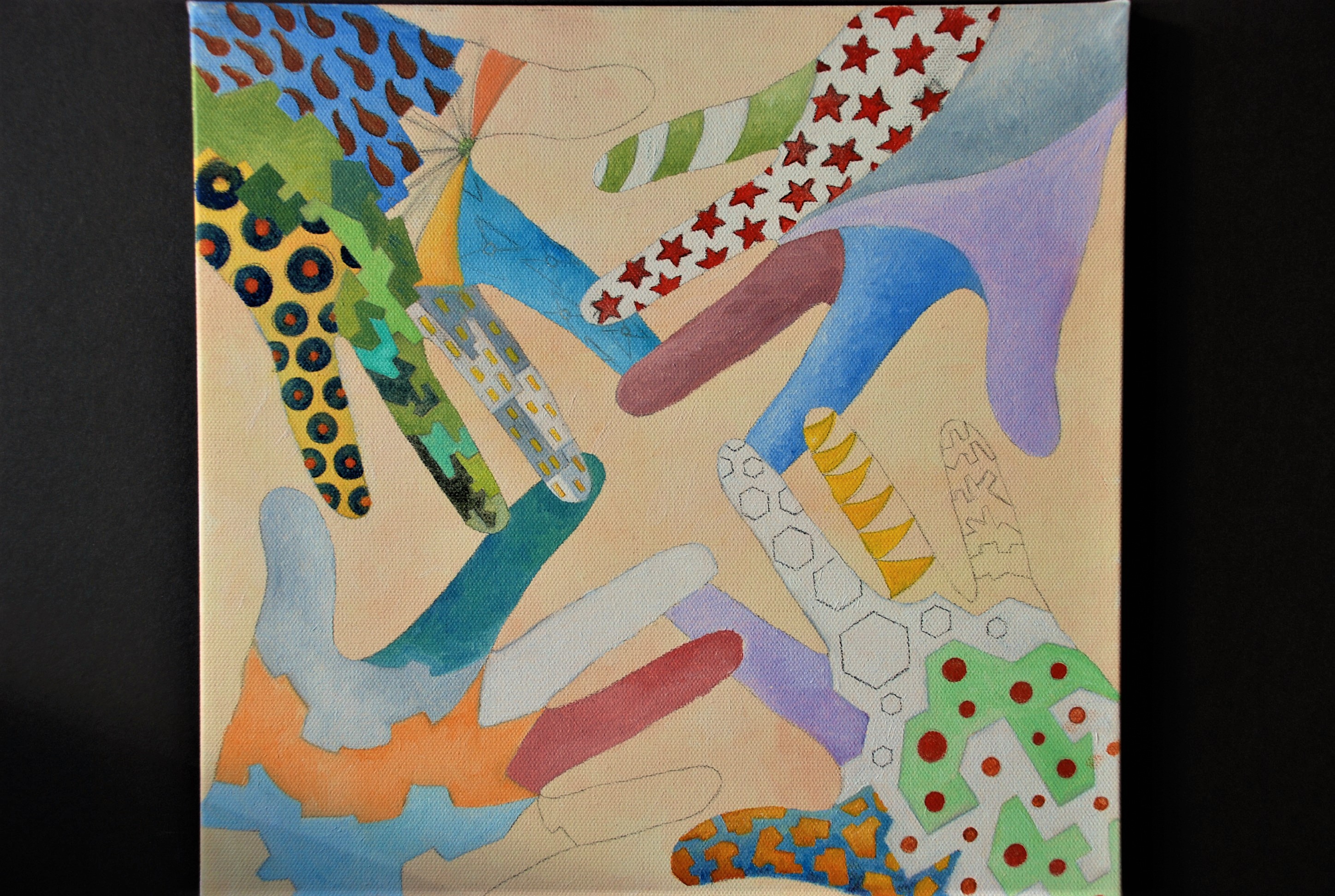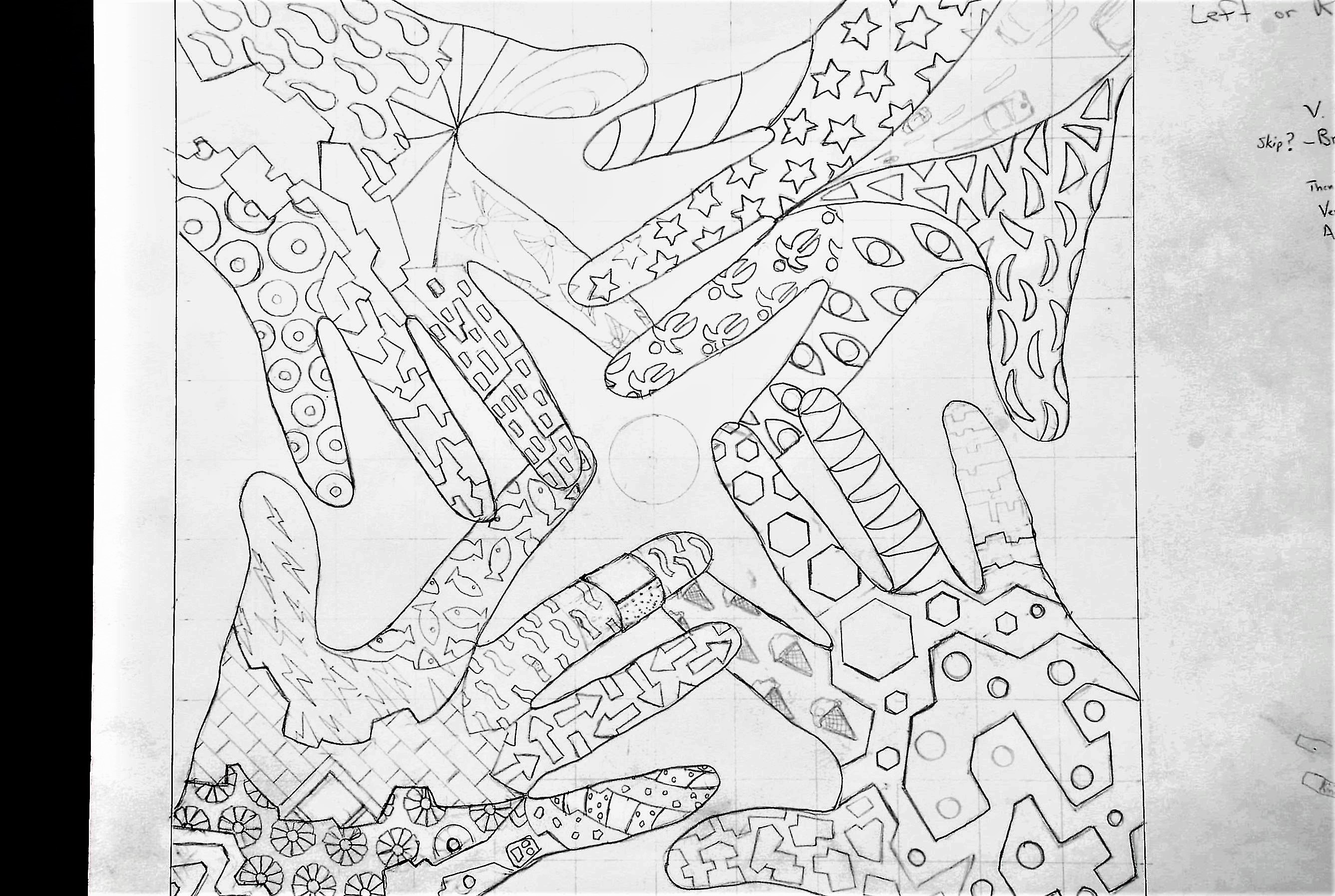 For the projected painting I decided on four traced hands (my hands, actual size). For the patterns, as I mentioned in last weeks post, I included several from the School Visual.