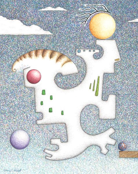 Of note; the ‘doodle’ spawned two finished artworks, one ‘color pencil/watercolor/pen&ink’ and a second as an oil painting – shown in next postings