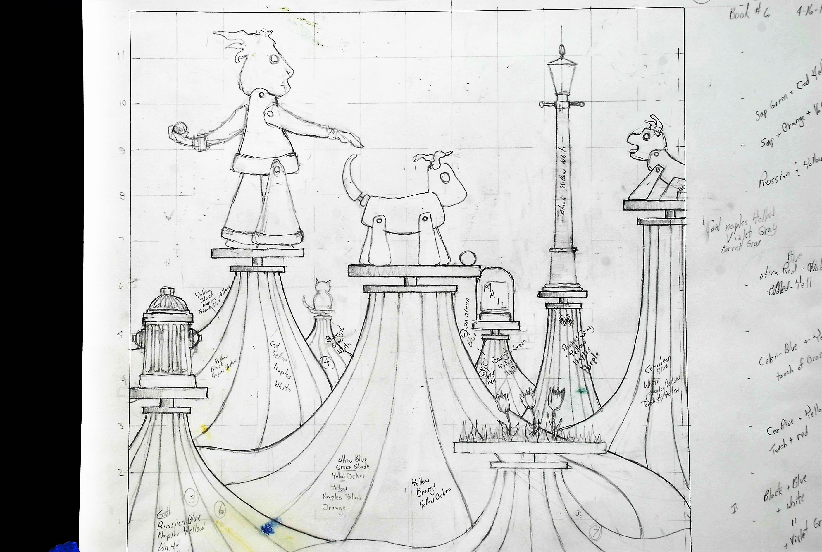 About 75 to 80% of the items included in the painting are by audience participation to the two year long painting project.
