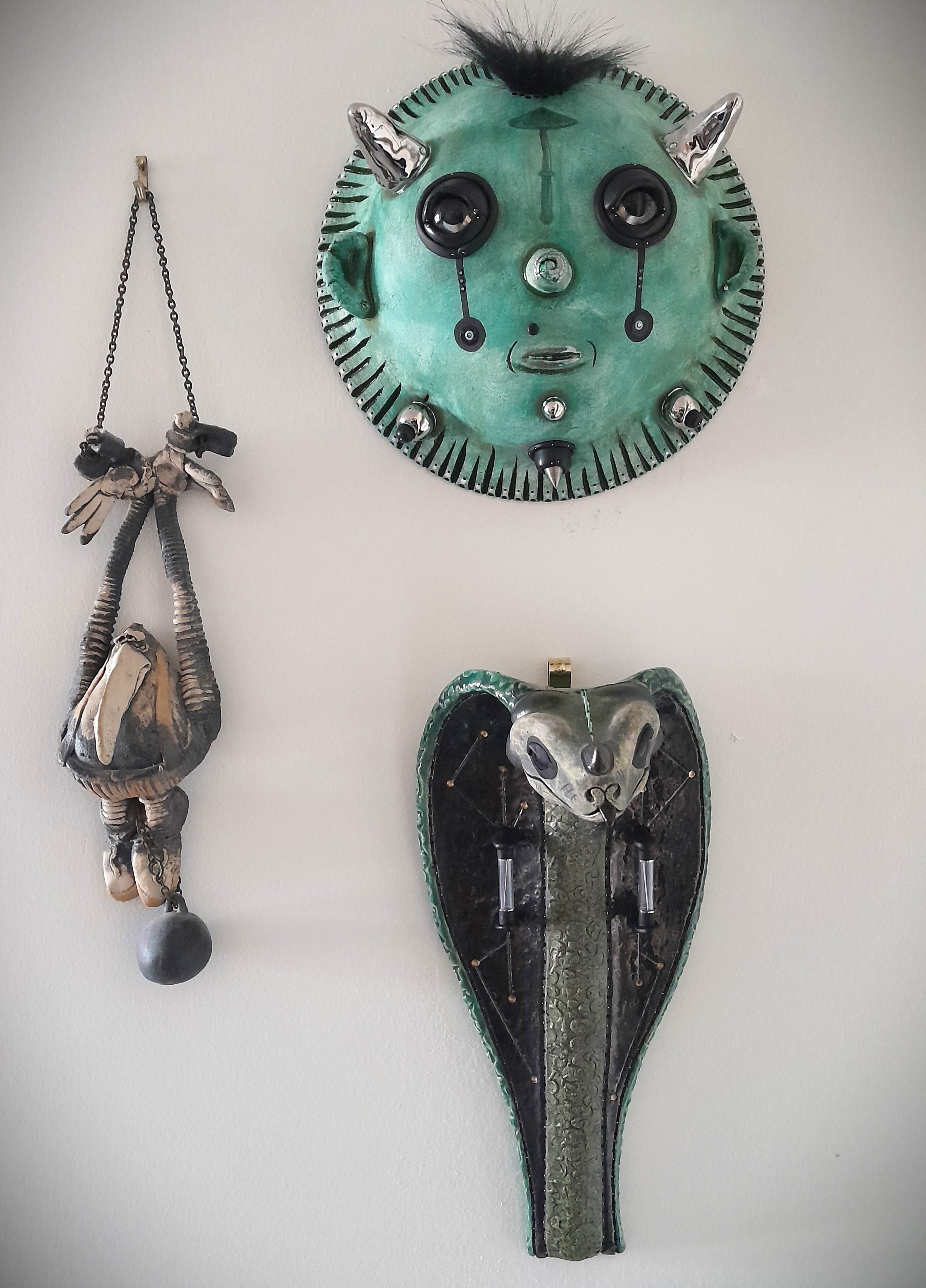 Two newly acquired sculptures from Brad Blair of which I gave names to. Clyde the Sorcerer (top) and his buddy, Fred the Serpent.